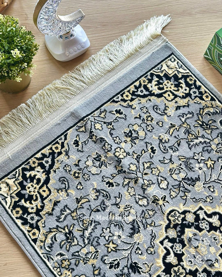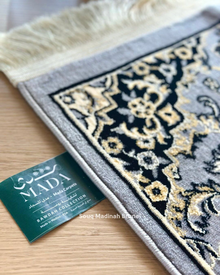 Al Rawdah Prayer Mat Inspired by Al-Masjid Nabawi, Crafted in Madina, Saudi Arabia (Grey)
