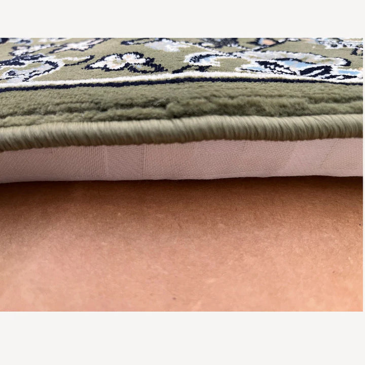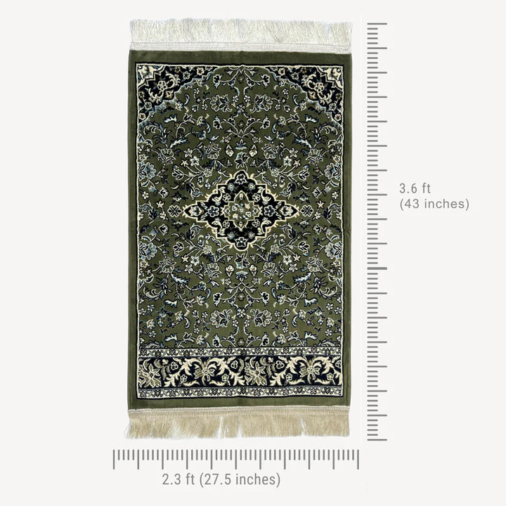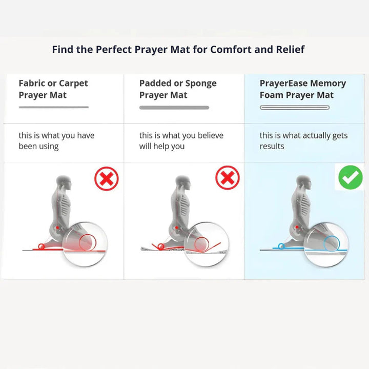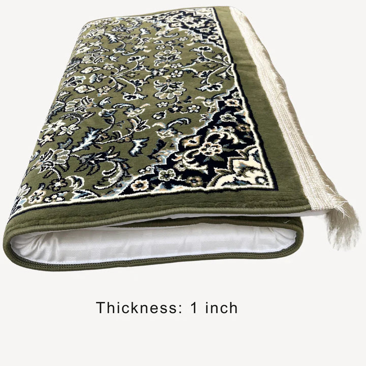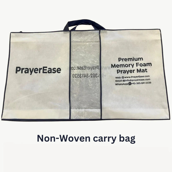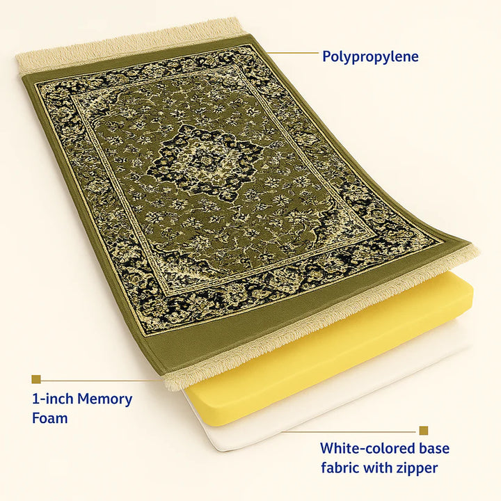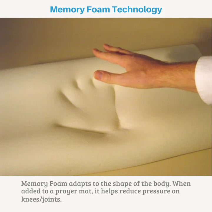 Inspired by the designs of carpets in Madina Mosque (Al-Masjid Al-Nabawi), the Riyad al-Jannah Design Memory Foam Prayer Mat (Janamaz) is a soft, premium-quality prayer mat. Its top layer is manufactured by Mada in Madina, Saudi Arabia and is customized by PrayerEase. It features a 1-inch thick layer of memory foam that helps provide relief from knee and joint pain, making it the ideal choice for a more comfortable and supportive prayer experience.